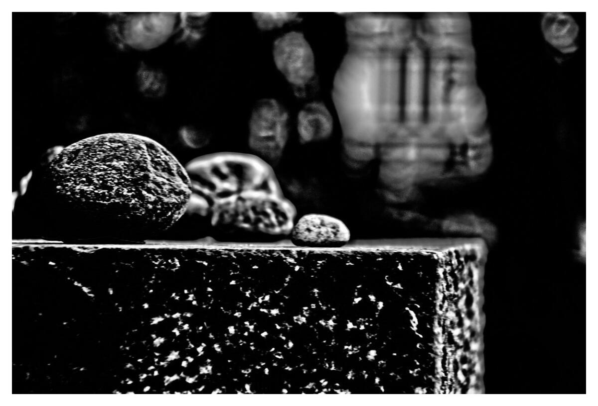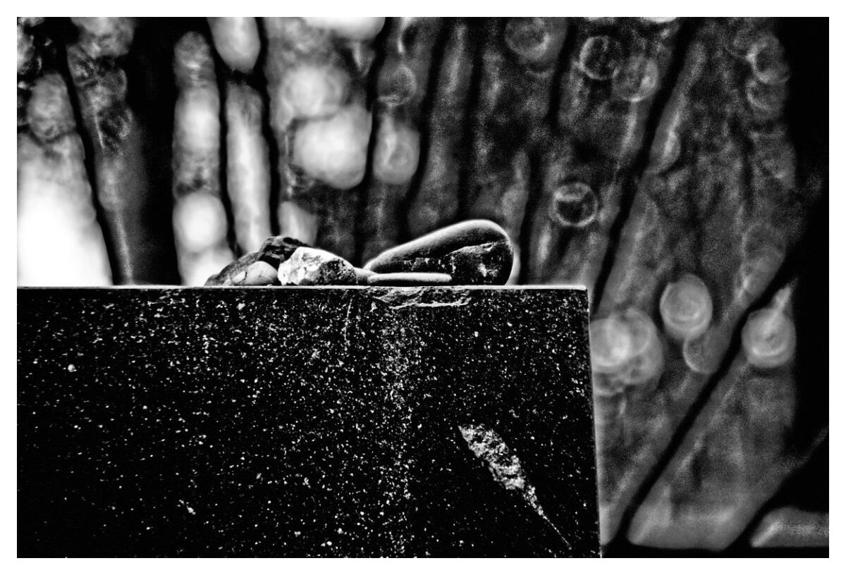 Nach uralter jüdischer Sitte legt man auf die Gräber der Hinterbliebenen statt Blumen kleine Kieselsteine als Zeichen der Erinnerung und des Gedenkens. Über den Ursprung dieser Sitte gibt es unterschiedliche Erklärungen. Durch meine intensive fotografische Auseinandersetzung mit jüdischen Friedhöfen bekamen die Kiesel für mich nach und nach einen neuen, tieferen Sinn. Bringt ein Hirte abends nach getaner Arbeit seine Schafe zurück ins Gatter, trägt er stets einen Beutel voller Kieselsteine mit sich. Die Zahl der Steine entspricht der Anzahl seiner Tiere. Er nimmt die Steine in die Hand und lässt dann für jedes Schaf, was in die Vergatterung läuft, einen Stein zurück in den Beutel fallen. Bleibt ein Stein übrig, fehlt eines der Tiere. Dann macht sich der Hirte auf die Suche nach dem schutz – bedürftigen Schaf. Wir alle sind gleichermaßen sowohl Hirte als auch Schaf. Folglich symbolisiert der Stein das Versprechen und die Gewissheit, dass niemand verloren geht oder vergessen wird. Der Kiesel ist das Fundament der Erinnerung. Übrig bleibt die Frage nach dem „wir“ und die Gewissheit, dass sich auch dann jemand kümmert, wenn alle Steine verbraucht sind.